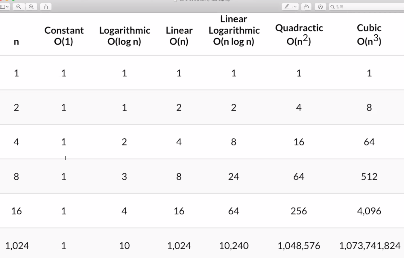 가장 많이 쓰이는 표기법으로 알고리즘 실행시간의 상한을 나타낸 표기법(최악의 경우)