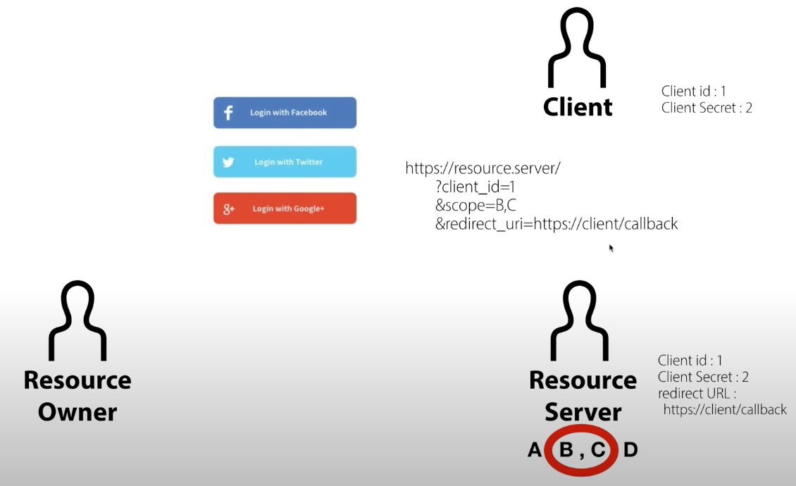 https://resource.server/?client_id=1/&scope=B,C&redirect_url=https://client/callback