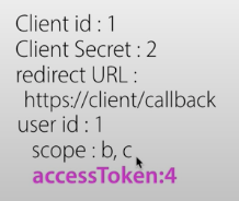authorization code는 임시 비밀번호로 리소스오너에게 줌(https://client/callback?code=3)