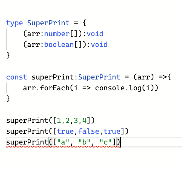 아래처럼 call signature에 없는 concrete type은 이 늘어날때 에러가 생길 수 있다