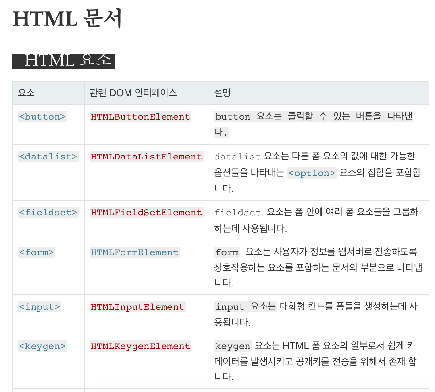 주소 링크: developer.mozilla.org/ko/docs/Web/HTML/Element