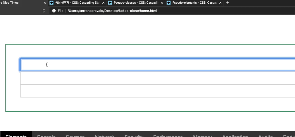 Input들 중 하나가 focused가 되면 form의 모습을 바꾸는 것